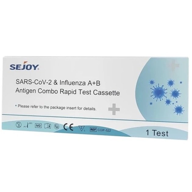 Sejoy SARS-CoV-2 & Influenza A + B Antigen Combo Rapid Self Test Cassette Τεστ Ποιοτικής Ανίχνευσης Αντιγόνων Covid-19 & Γρίπης Τύπου Α/Β σε Ρινοφαρυγγικό Επίχρισμα